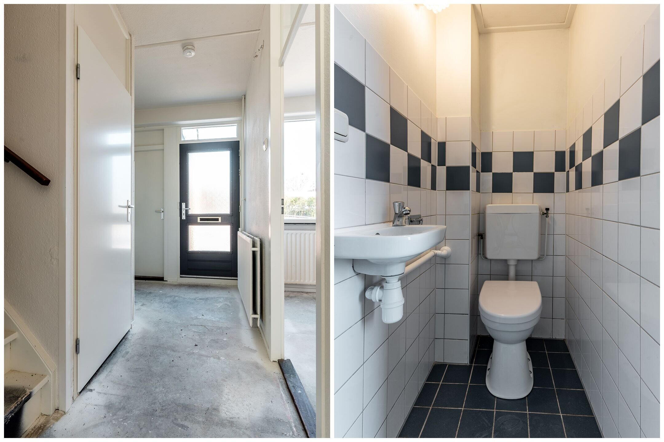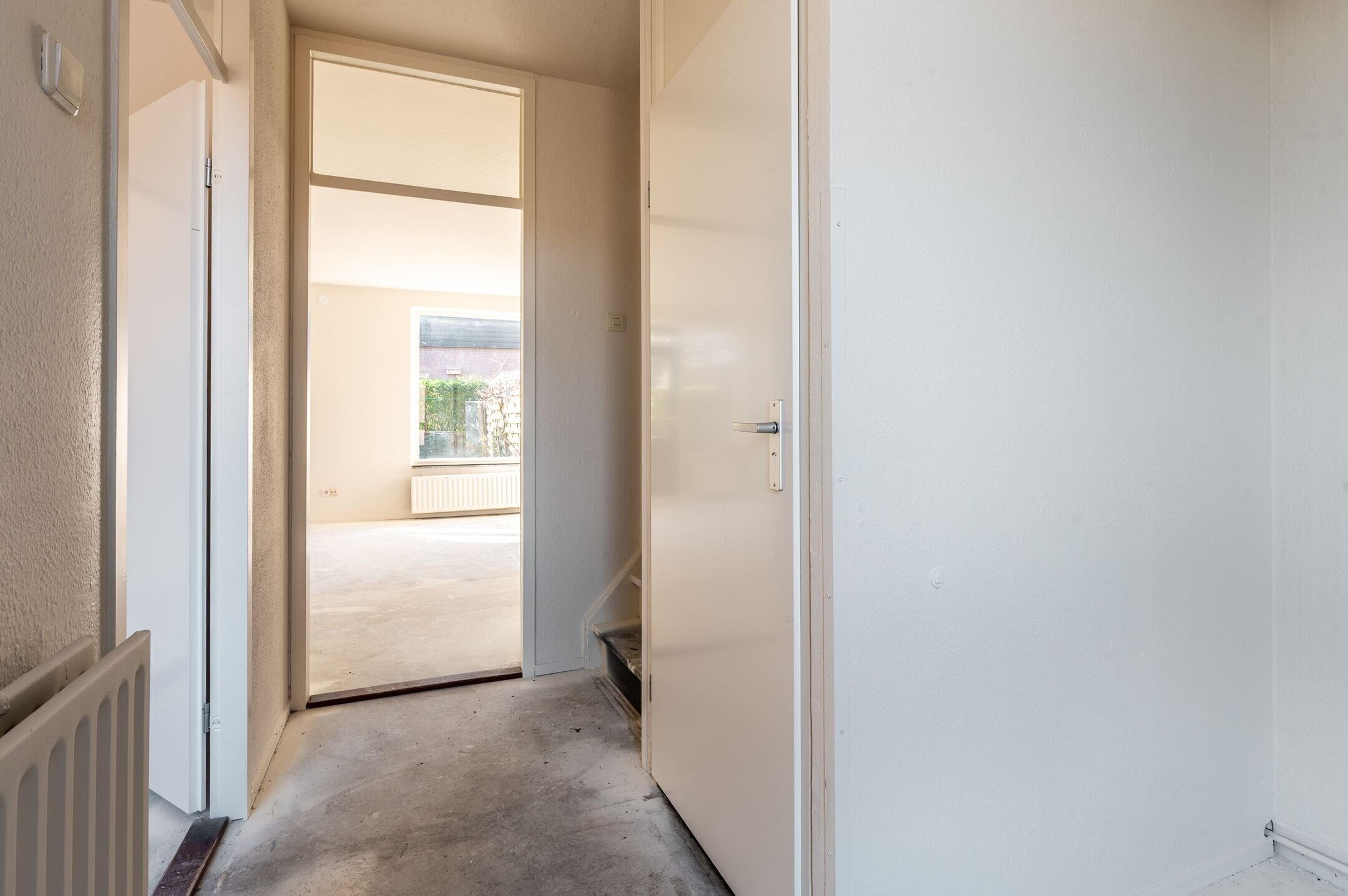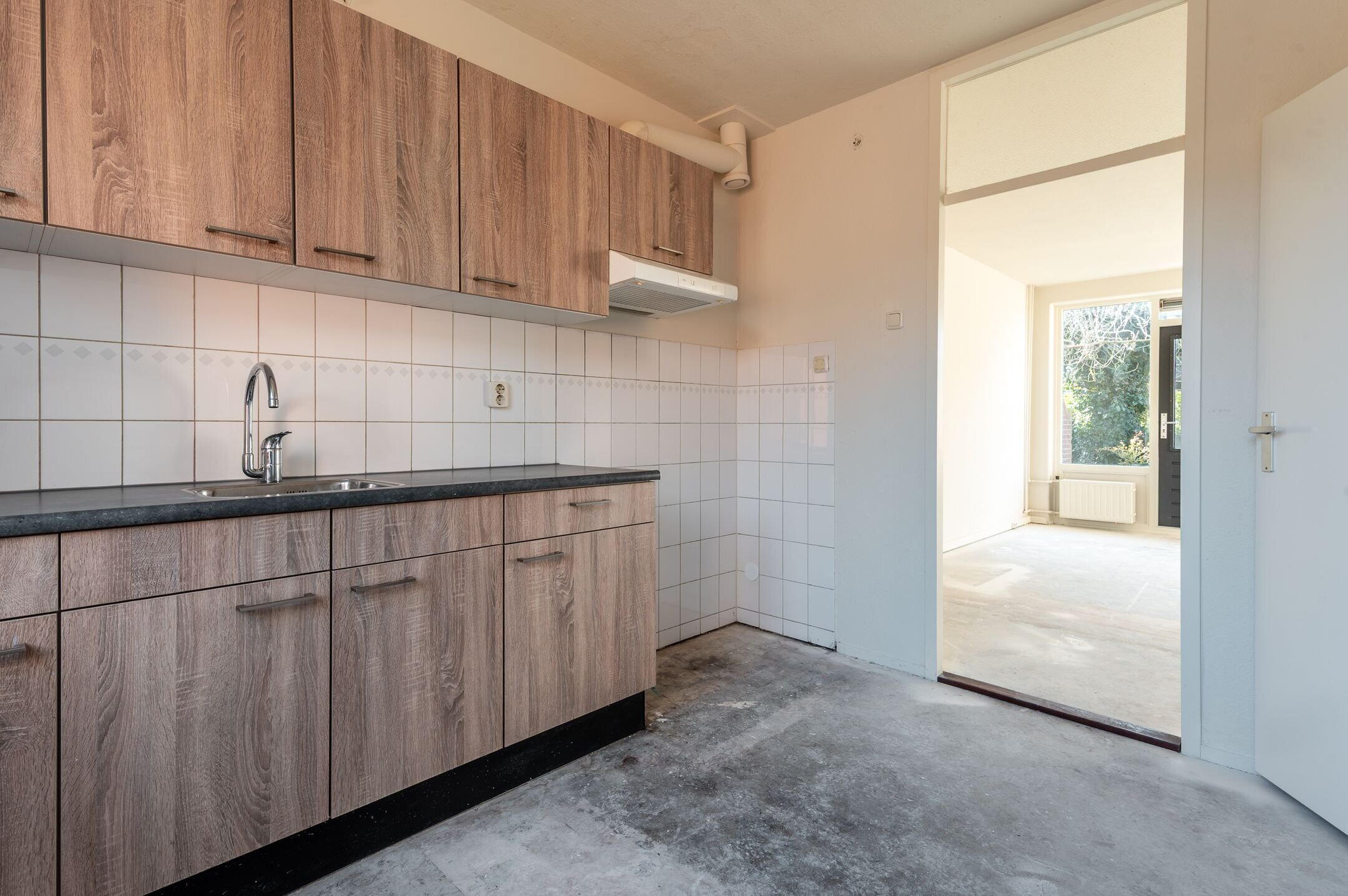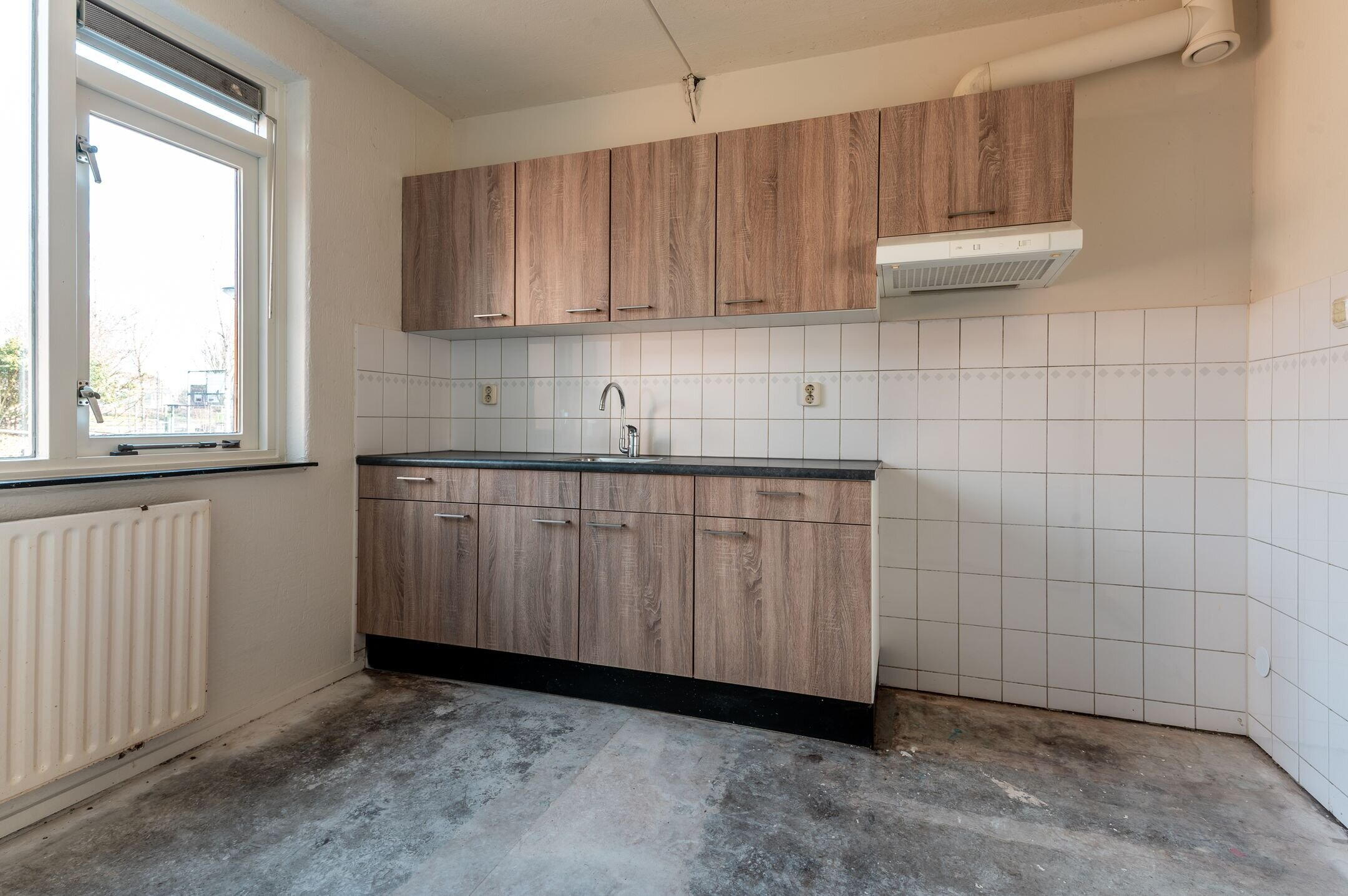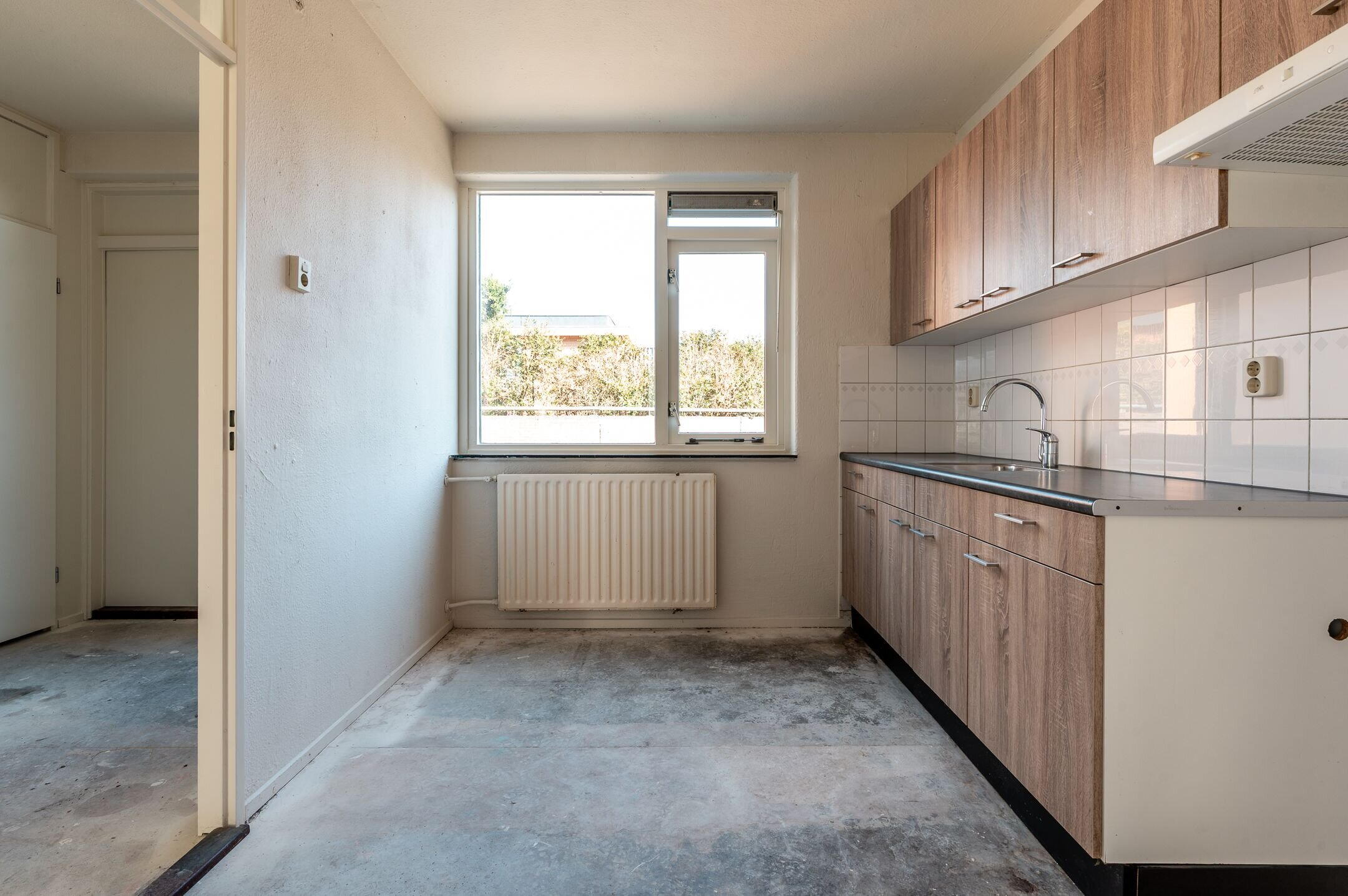Begane grond: Entree, hal met meterkast, toiletruimte met fonteintje en toegang tot de aangebouwde stenen berging; ruime, tuingerichte woonkamer van circa 25m²; aan de voorzijde van de woning gelegen afgesloten keuken van 8,7m² welke is voorzien van een standaard keukenblok met een afzuigkap, maar zonder verdere inbouwapparatuur.