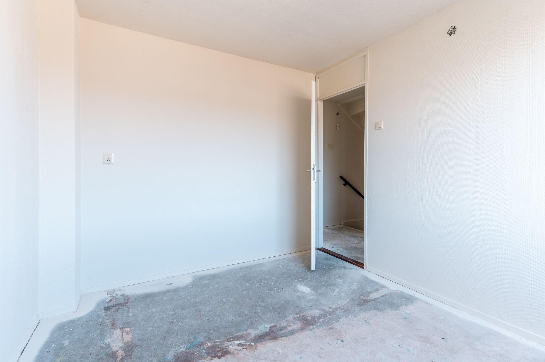 Overloop; drie slaapkamers van respectievelijk 8,4-, 9,6- en 14,3m²; eenvoudig, maar netjes uitgevoerde, volledig betegelde badkamer welke is voorzien van een douchehoek, wastafel, tweede toilet, wasmachine aansluiting alsmede een raam voor natuurlijk lichtinval en ventilatie. Vaste trap naar de tweede verdieping.