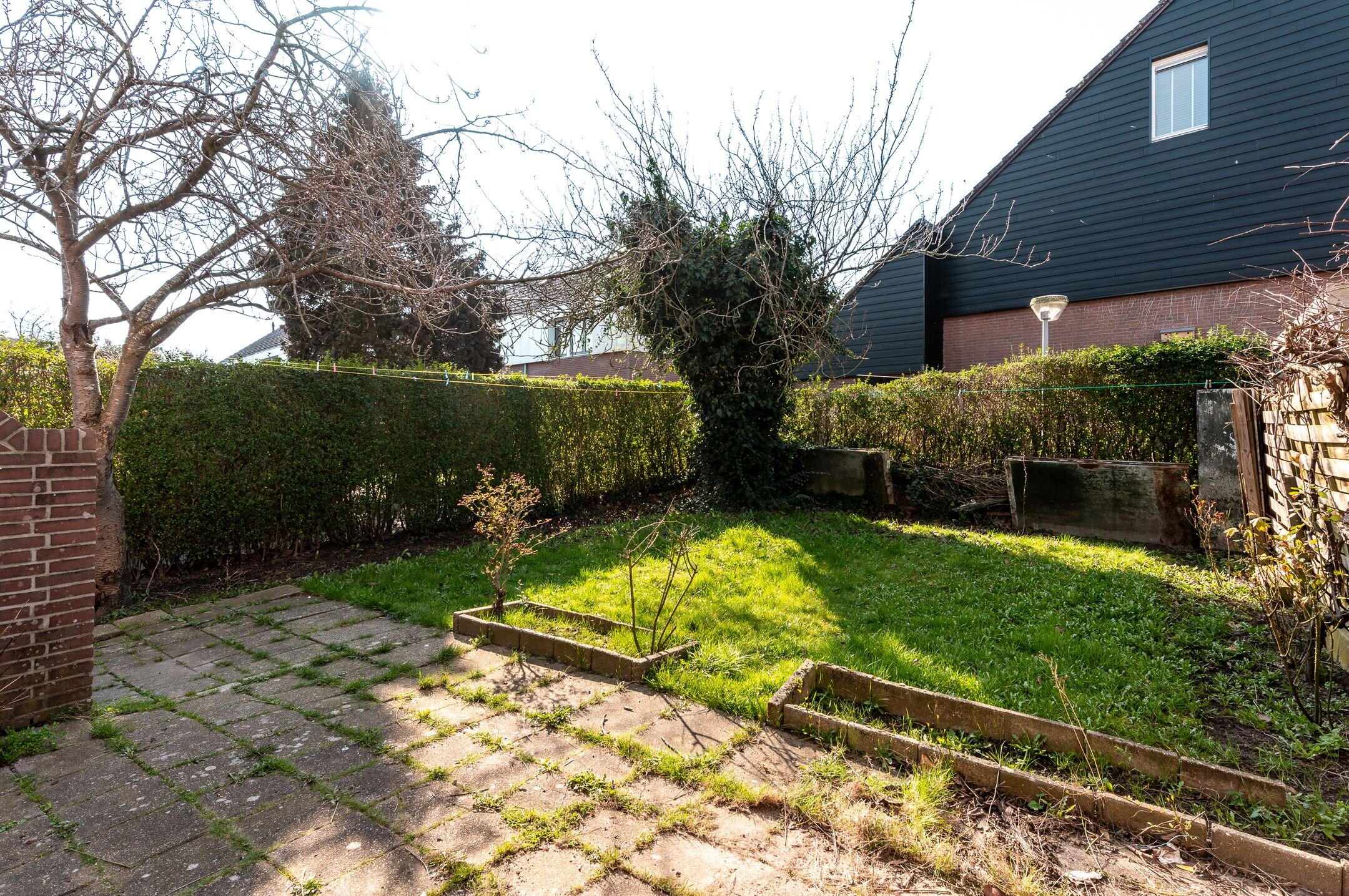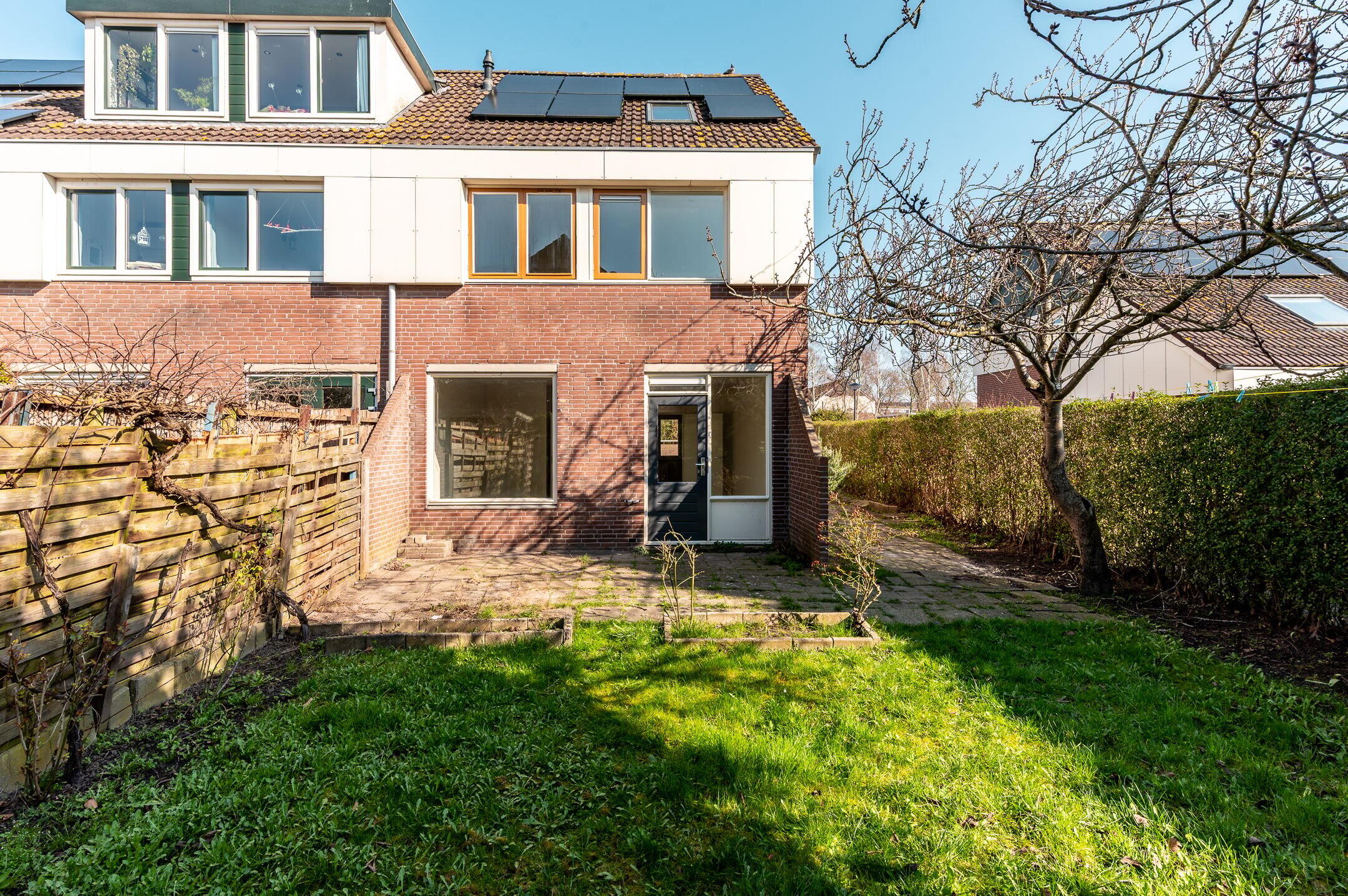 De tuin aan de achterzijde op het zonnige zuidwesten gesitueerd en voorzien van een terras, een flink gazon en diverse beplanting. De zijtuin is, evenals de voortuin grotendeels bestraat. Door de huidige inrichting is er een parkeergelegenheid op eigen terrein gerealiseerd. Onbekend is het of dit vanuit de gemeente is toegestaan.