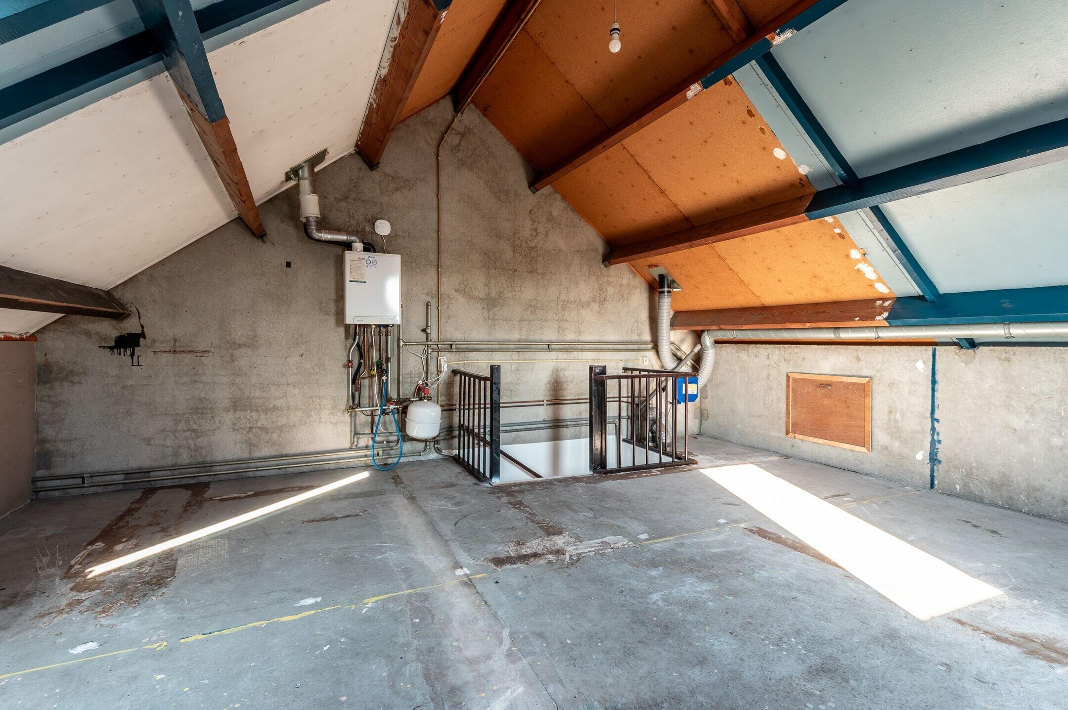 Ruime open zolderverdieping (ruim 30m²) met de opstelling van de CV- installatie (Intergas hr-combi uit 2017), bergruimte achter de knieschotten, een dakraam en een extra raam in de kopgevel. Op deze verdieping is eenvoudig een extra slaapkamer te realiseren.